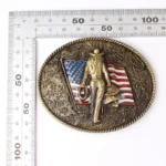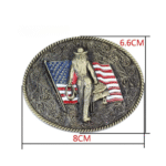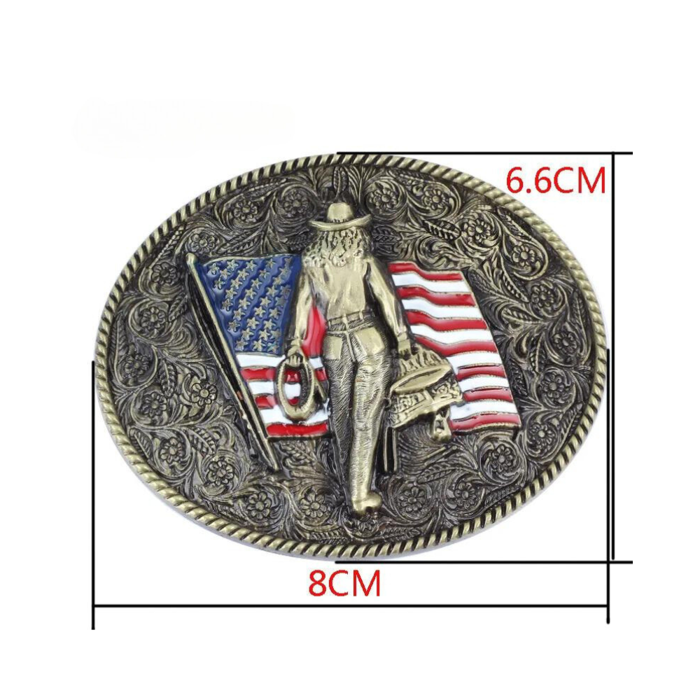 Die einzigartige Amerikanische Cowgirl mit Flaggen-Gürtelschnalle verkörpert den Stolz des Wilden Westens und patriotische Leidenschaft. Die kunstvoll gestaltete Cowgirl-Figur, kombiniert mit der detailreichen amerikanischen Flagge, macht dieses Accessoire zu einem unvergleichlichen Blickfang für jedes authentische Western-Outfit.