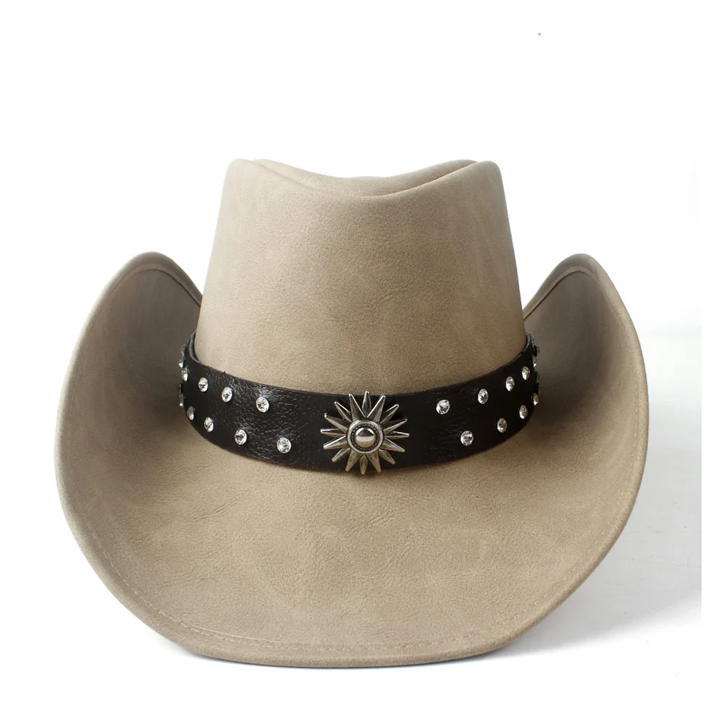 Eleganter beiger Leder-Cowboyhut mit Sunburst-Akzent