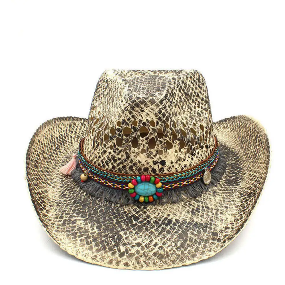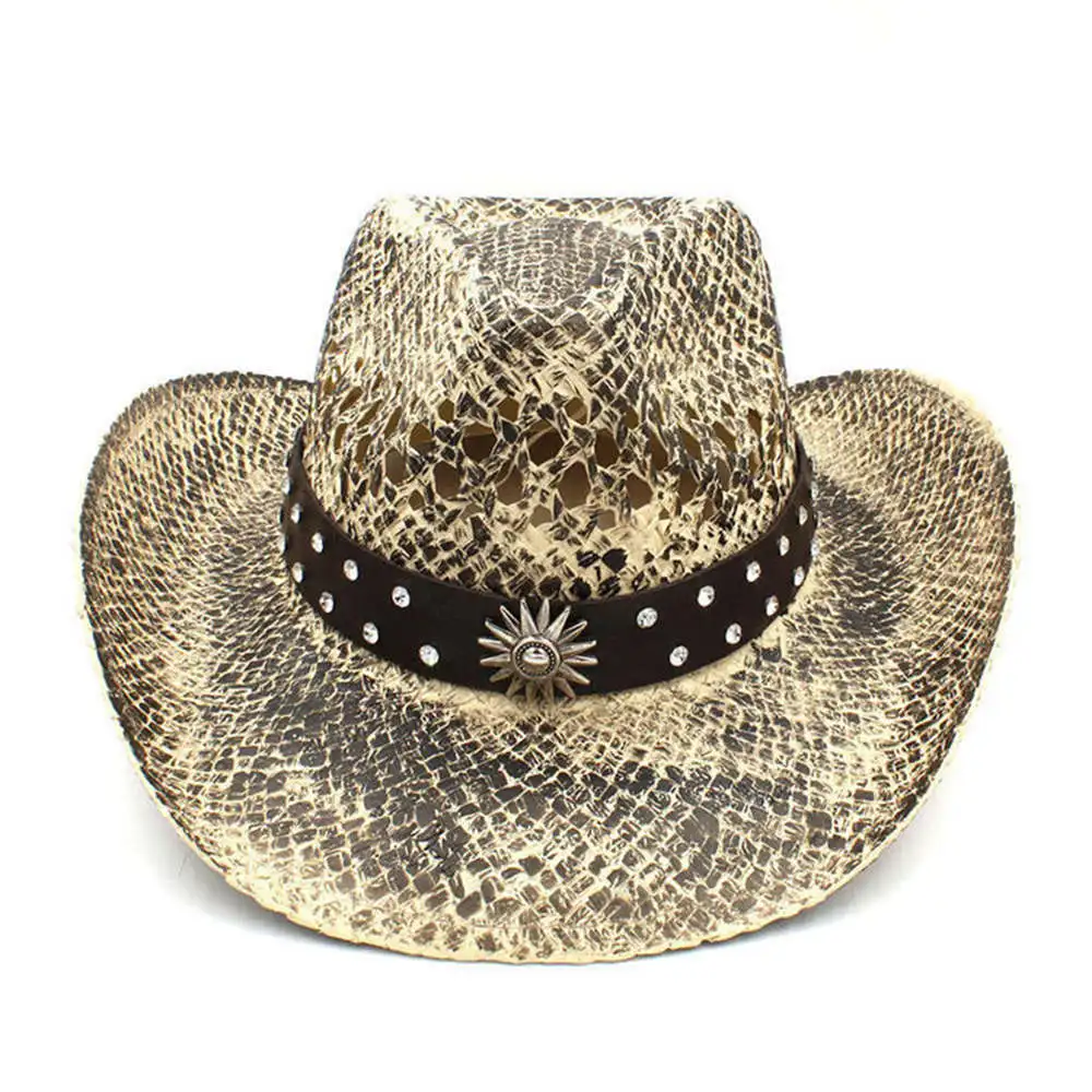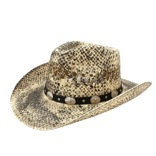 Der stilvolle Cowboyhut aus 100% natürlichem Stroh in Schlangenhautoptik