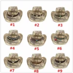 Erhältlich in 9 variantenreichen Designs, besticht jeder Hut durch sein individuelles dekoratives Band – ob mit türkisfarbenen Perlen, klassischen Conchos oder edlen Lederakzenten. Diese kunstvollen Akzente setzen modische Highlights und unterstreichen den vom Western inspirierten Charme dieses besonderen Kopfbedeckungsstücks.