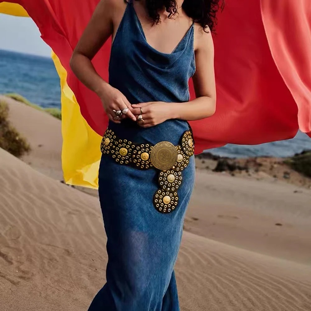 Ob zu einem luftigen Kleid, einer taillierten Bluse oder im lässigen Cowboy-Chic – dieser breite Gürtel mit seiner aufwendigen Metallschnalle setzt in jeder Garderobe einen beeindruckenden Akzent und bringt einen trendigen, westerninspirierten Touch in Ihren Look. Dieses modische Schmuckstück ist die perfekte Ergänzung für jede Saison und rundet Ihr Outfit stilvoll ab.