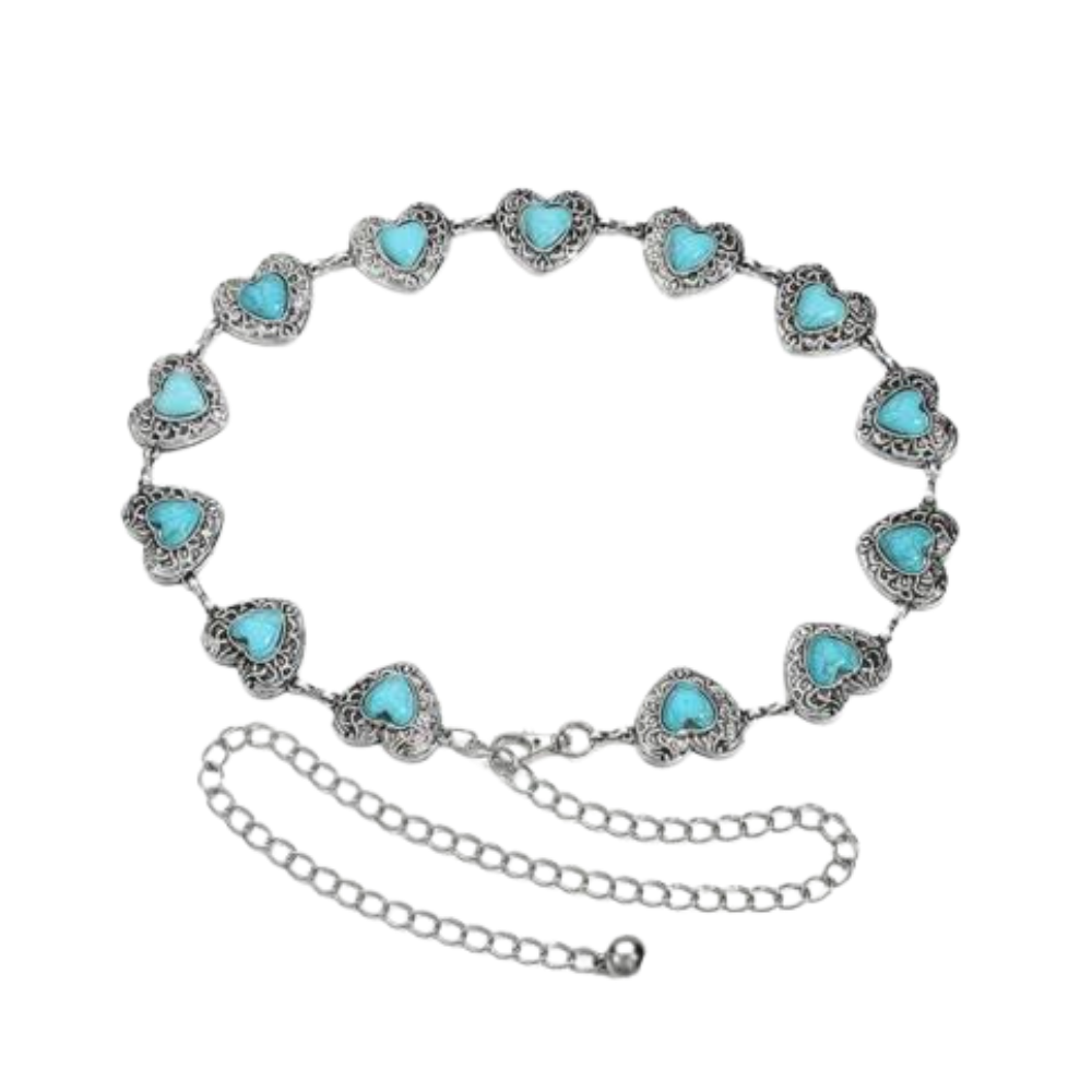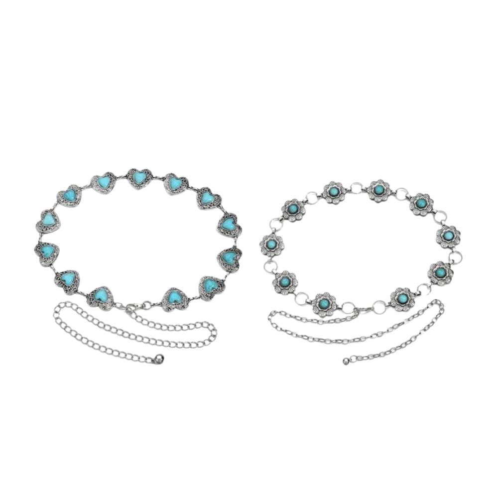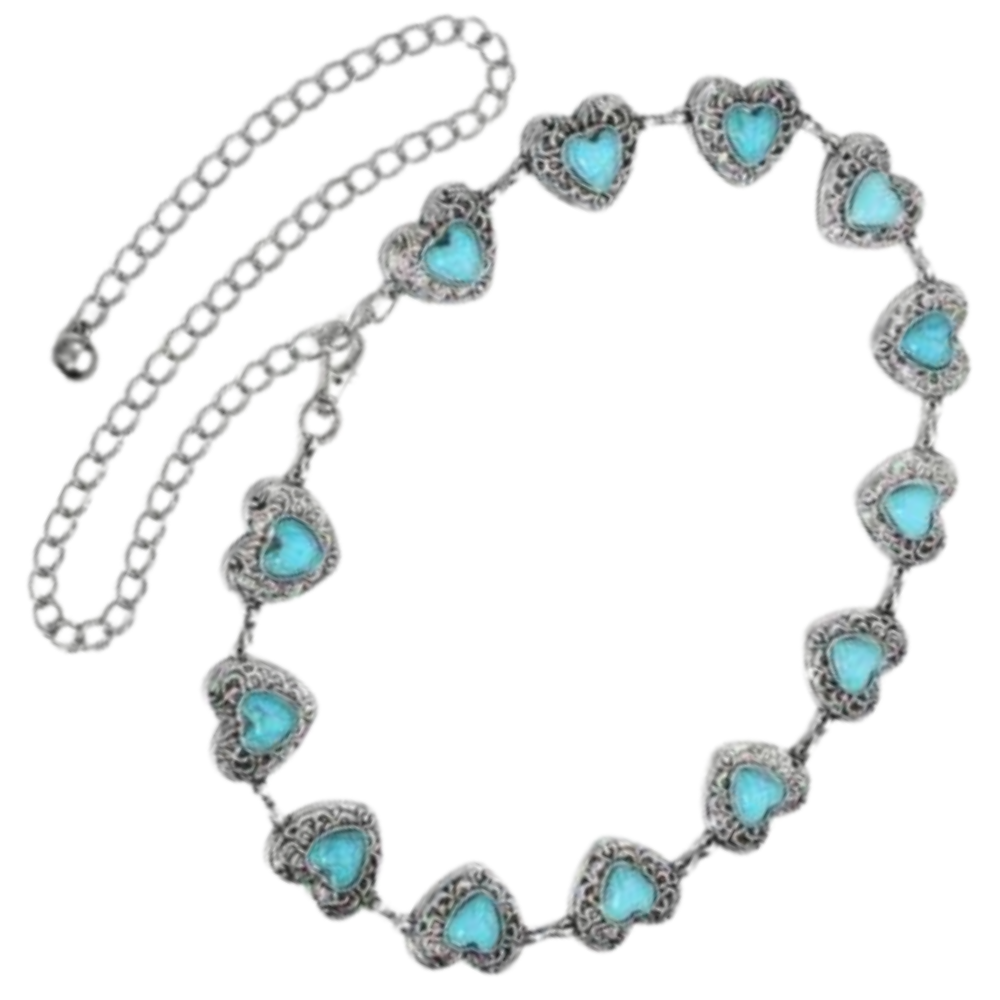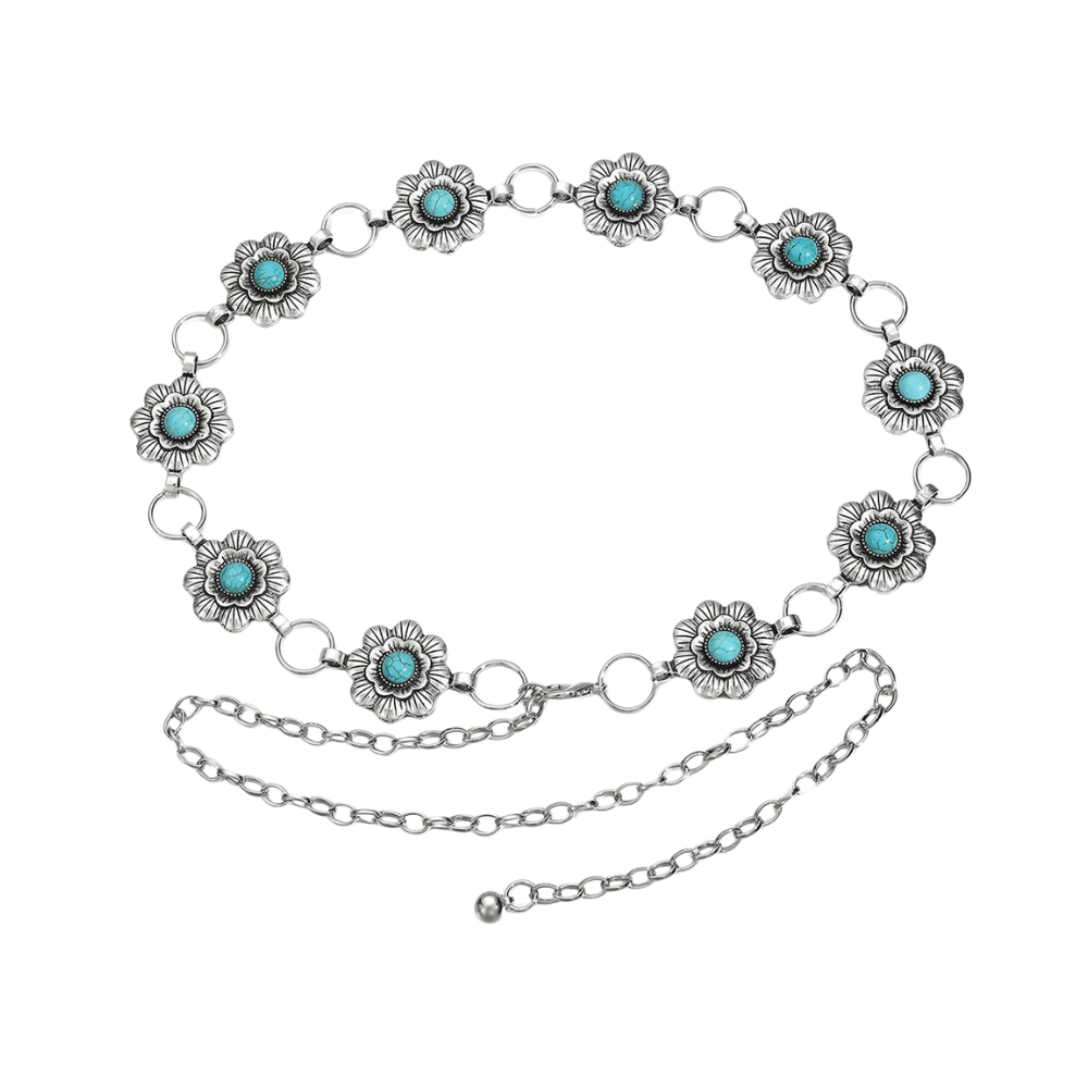 Eleganter Damen-Silber-Western-Kettengürtel mit türkisen Akzenten