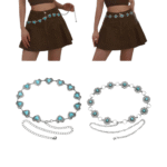 Setzen Sie ein stilvolles Statement mit diesem western-inspirierten Kettengürtel, der Ihrem Outfit einen Hauch von Luxus und Abenteuer verleiht. Die auffälligen türkisen Akzente harmonieren perfekt mit dem glänzenden Silber und erinnern an den unverwechselbaren Charme des amerikanischen Südwestens. Ob zu Kleidern, Röcken oder Jeans – dieser vielseitige Gürtel ergänzt Ihren Look mit einer Prise Western-Flair und modernem Chic.