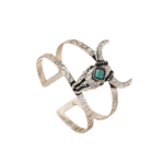 Dieses einzigartige Manschettenarmband mit Türkis-Akzent besticht durch seine robuste Zinklegierung in Kombination mit einem rustikalen, silberplattierten Finish. Es vereint den Boho-Stil mit western-inspirierter Eleganz und setzt dabei modische Akzente – egal ob bei einem entspannten Alltag oder einem besonderen Anlass. Jedes Detail, vom authentischen Bullen-Schädel bis zum leuchtenden Türkisstein, spiegelt den zeitlosen Charme der amerikanischen Western-Kultur wider.