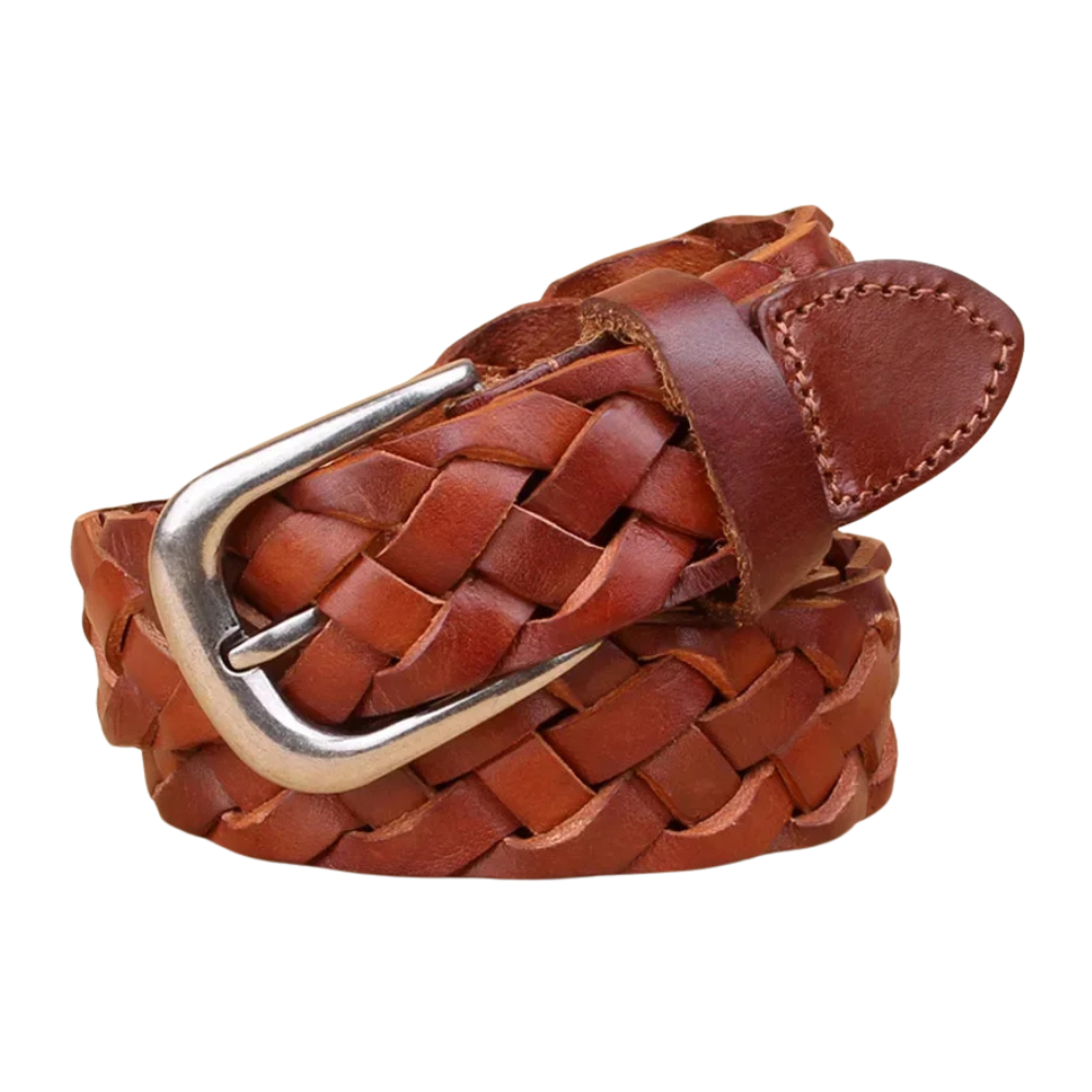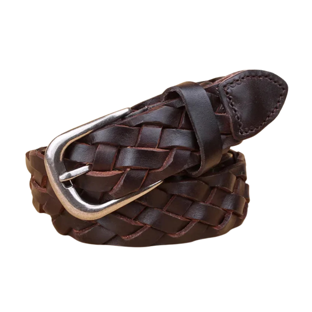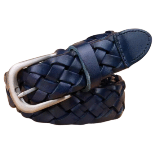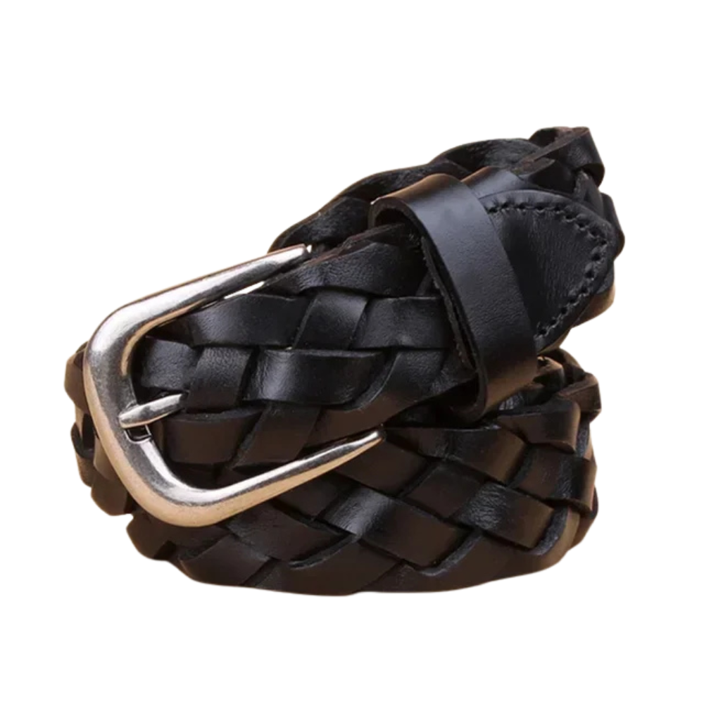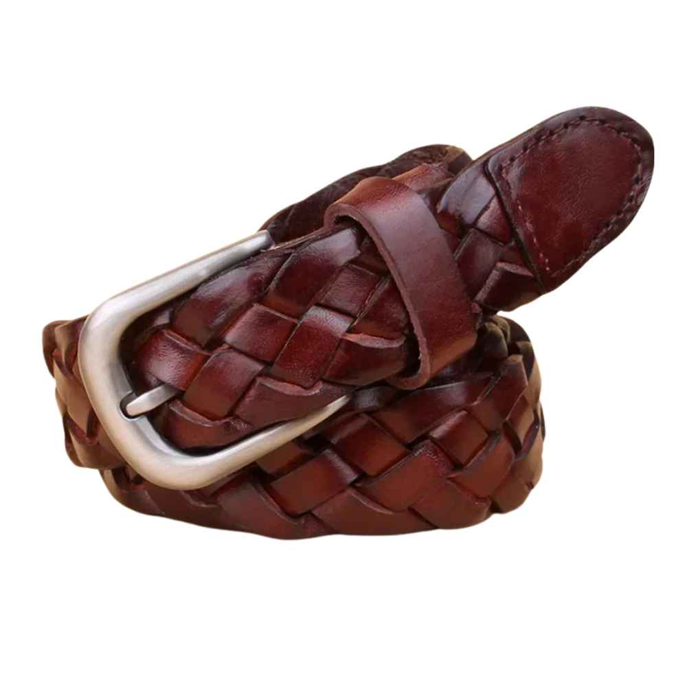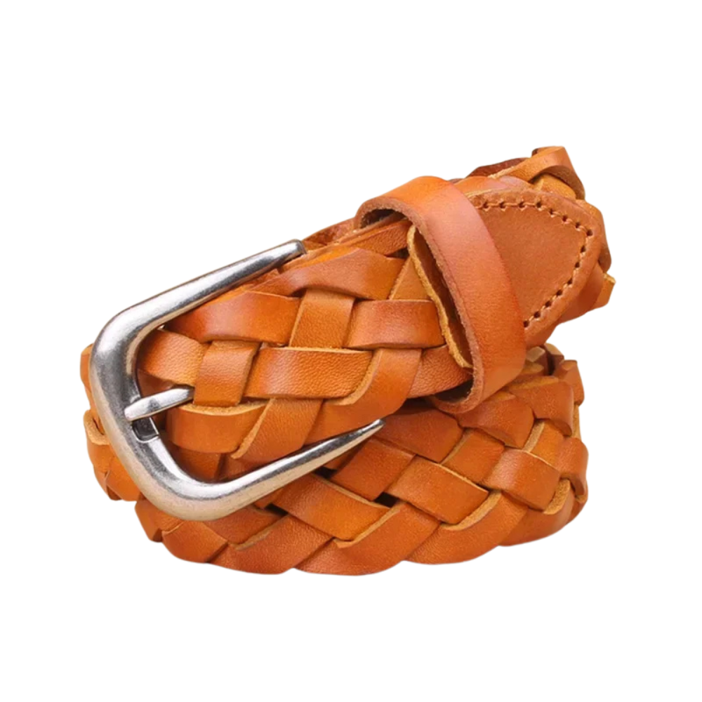 Damen geflochtener Ledergürtel mit charakteristischer Metallschnalle