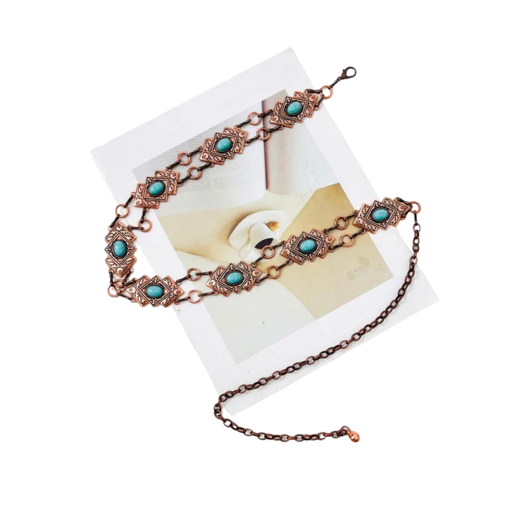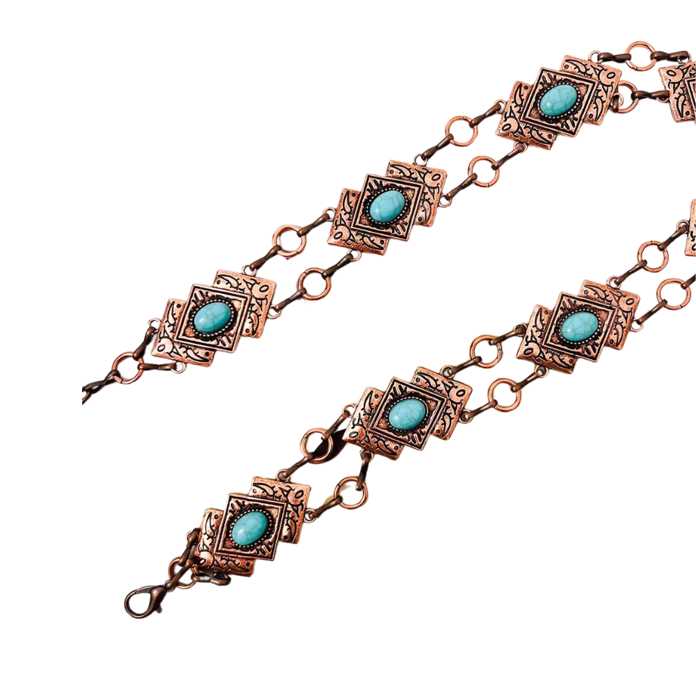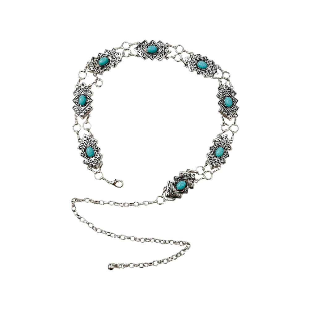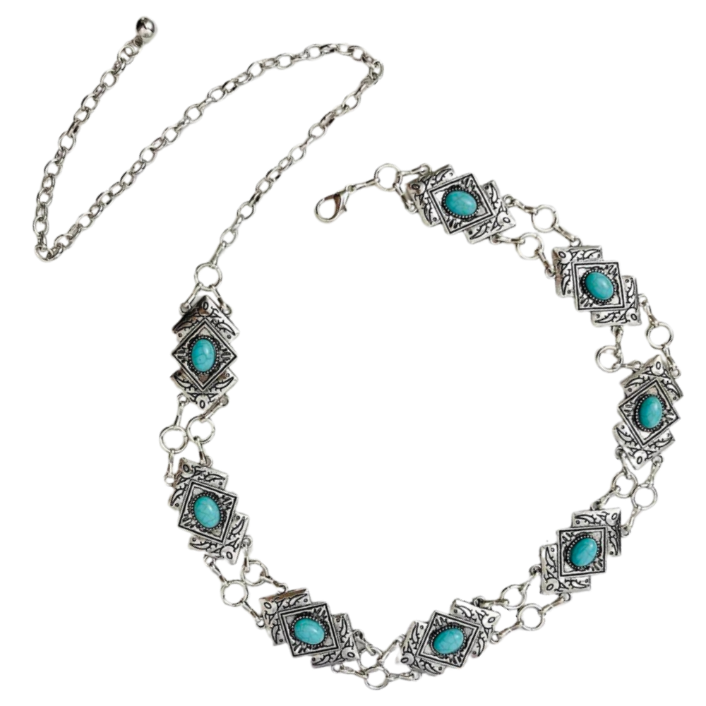 Moderner Damen-Western-Ketten-Gürtel mit Türkisen Akzenten