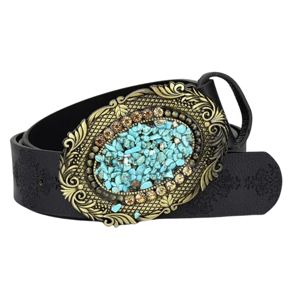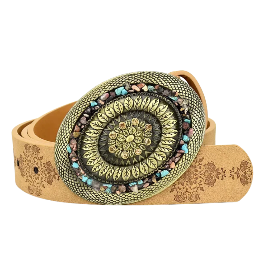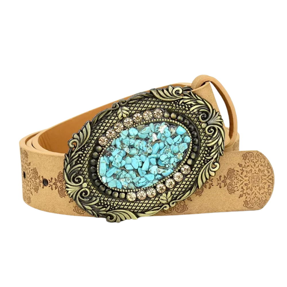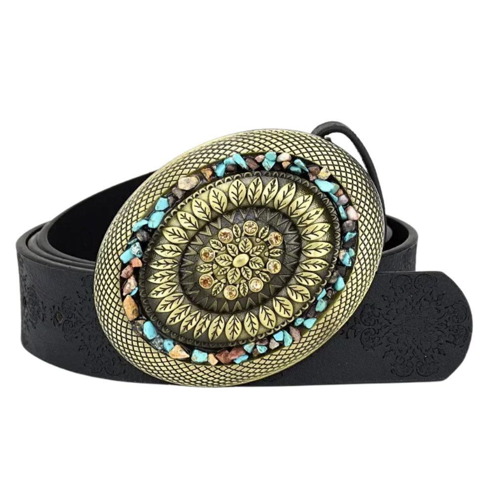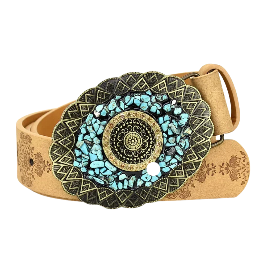Gefertigt aus hochwertigen Materialien, steht dieser Gürtel für Langlebigkeit und Tragekomfort. Der 3,5 cm breite, geprägte Lederstreifen fügt sich harmonisch in verschiedenste Stilrichtungen ein und ist ideal für alle, die Western-Mode und trendige Accessoires lieben. Er ist ein absolutes Must-have für modebewusste Frauen, die ihrem Look eine authentische und individuelle Note verleihen möchten – und das den ganzen Tag über.