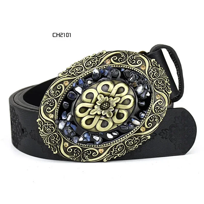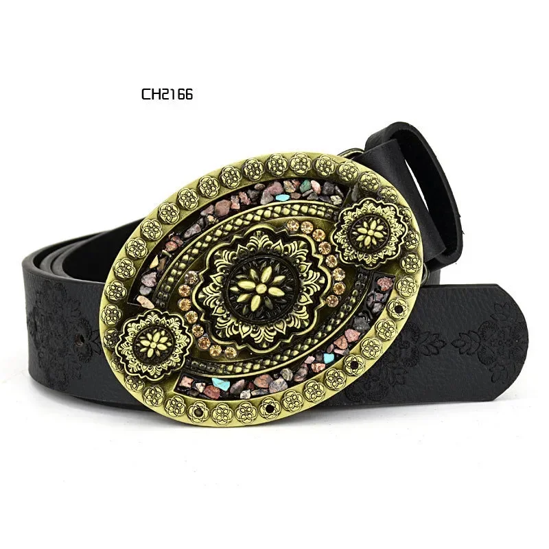 Damen western leder geprägter gürtel mit dekorativer schnalle