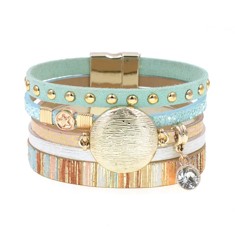 Damen Western Leder mehrlagiges Charmarmband – Stilvoll und Vielseitig für Jeden Anlass