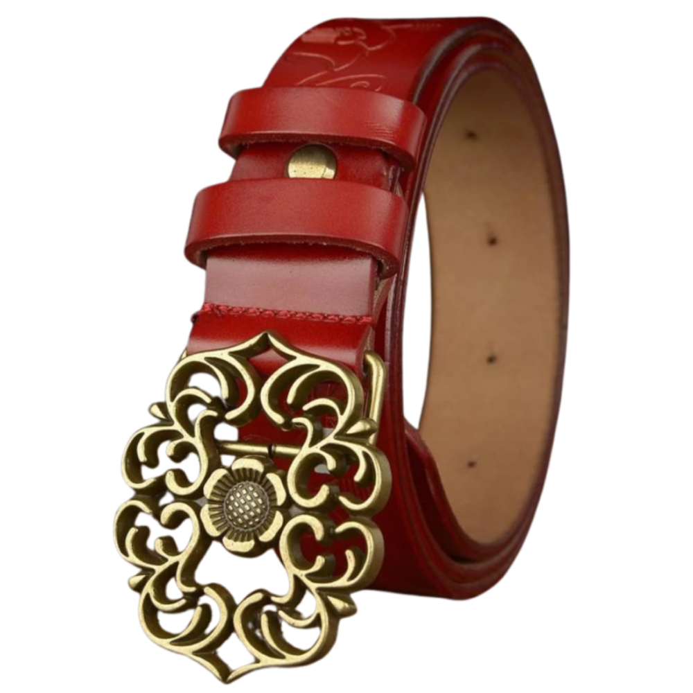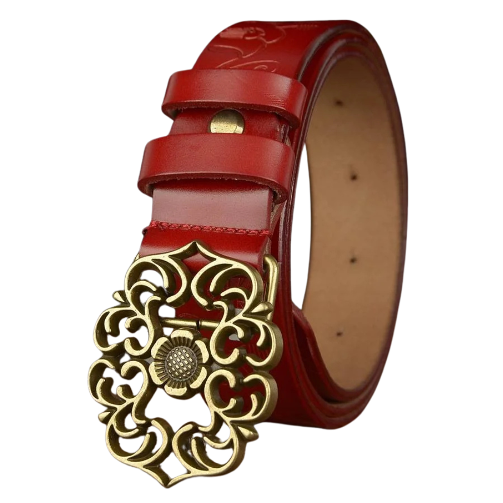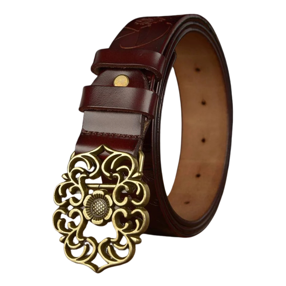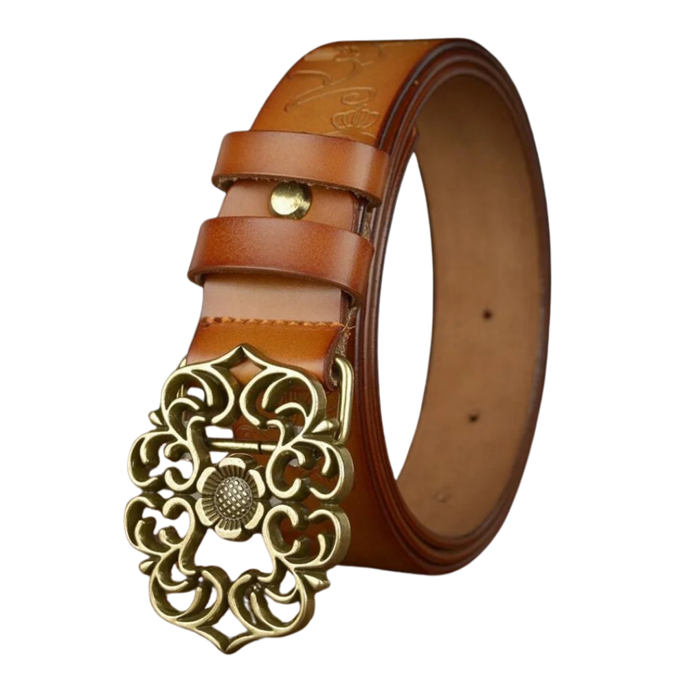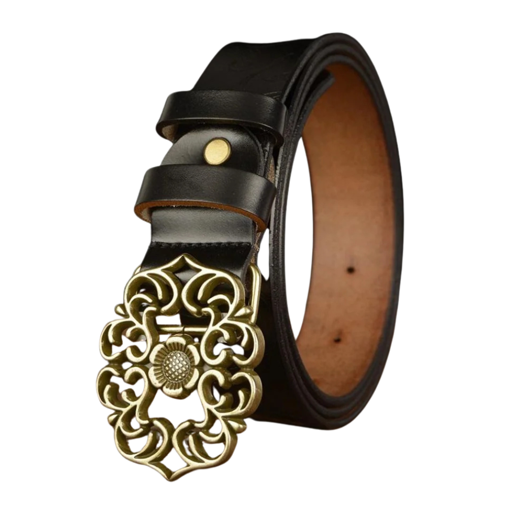 - Kunstvoll verzierte Metallschnalle für einen einzigartigen Look