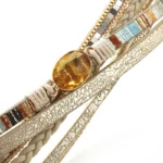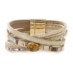 Für einen hohen Tragekomfort sorgt der stabile magnetische Verschluss, der sicheren Halt garantiert. Das raffinierte, mehrlagige Design kombiniert strukturierte und geflochtene Elemente, akzentuiert mit edlen Leder- und Kristalldetails, und schafft so eine an den Westernstil erinnernde, zeitlose Ästhetik. Ob für festliche Anlässe, ausgelassene Partys oder das Alltagsoutfit – dieses vielseitige Armband setzt immer einen stilvollen Akzent.