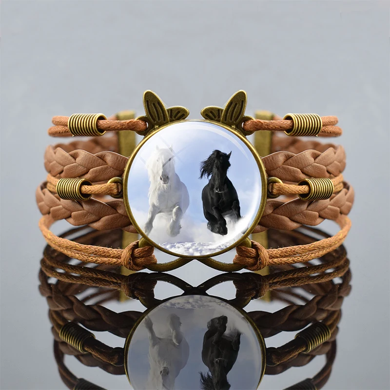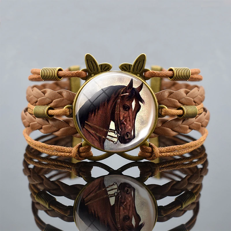 Lederarmband mit Pferdeanhänger und ausdrucksstarkem Design