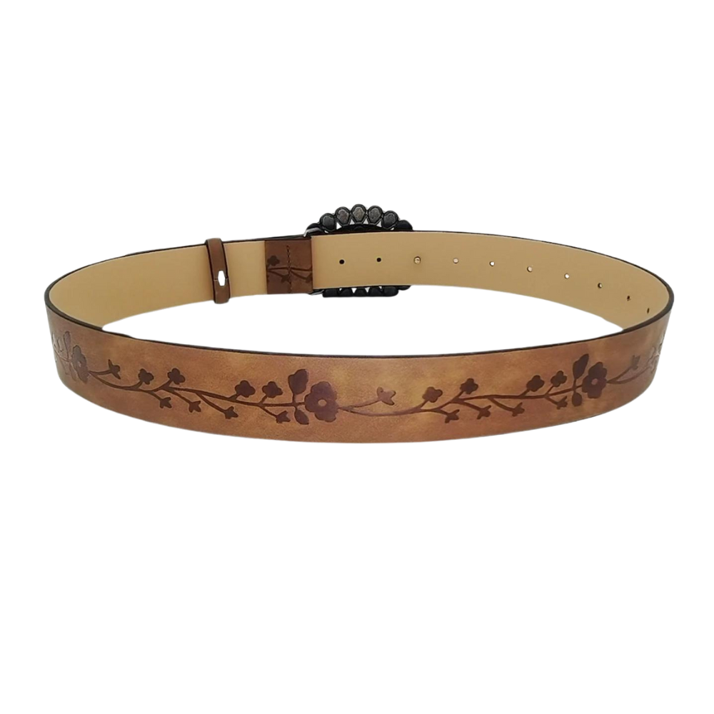Einzigartiger Damenwesterngürtel mit stilvoller, blumiger Schnalle