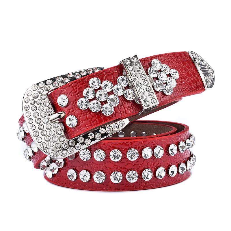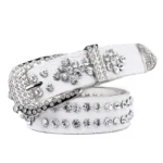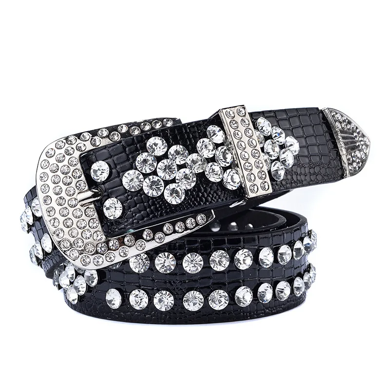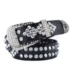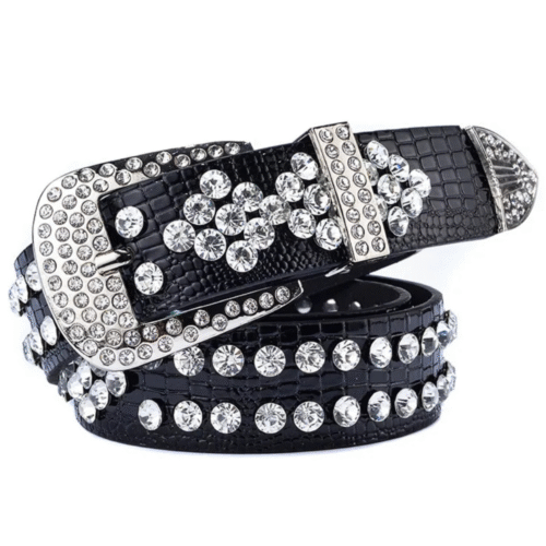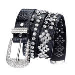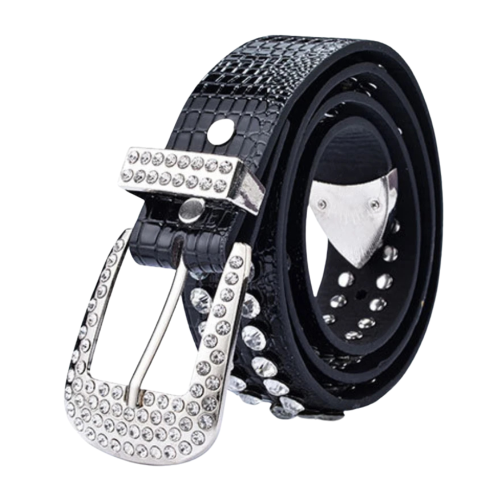 Erleben Sie den einzigartigen Charme dieses trendigen Damen-Westernledergürtels mit funkelnden Strassakzenten, der garantiert alle Blicke auf sich zieht. Die schimmernden Strasssteine verleihen Ihrem Outfit eine glamouröse und moderne Note – ideal für den lässigen Tageslook ebenso wie für elegante Abendveranstaltungen.