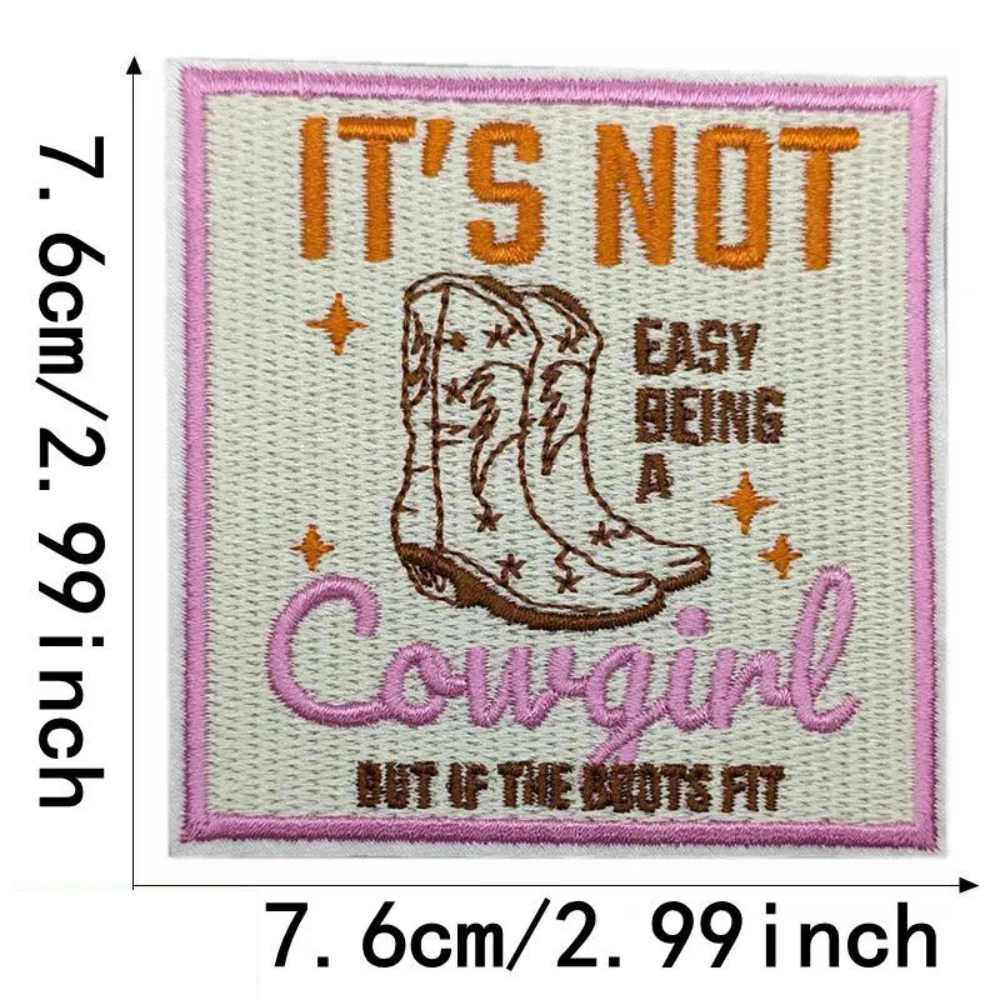 Tauche ein in den Zauber des Wilden Westens mit diesem originellen und inspirierenden Patch „Es ist nicht einfach, ein Cowgirl zu sein“. Die hochwertige Stickerei und das markante Design machen diesen Applikationsaufnäher zu einem absoluten Must-have für stilbewusste Cowgirl-Fans, die ihrem Look eine ganz persönliche Note verleihen möchten.