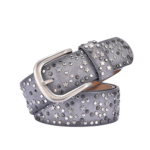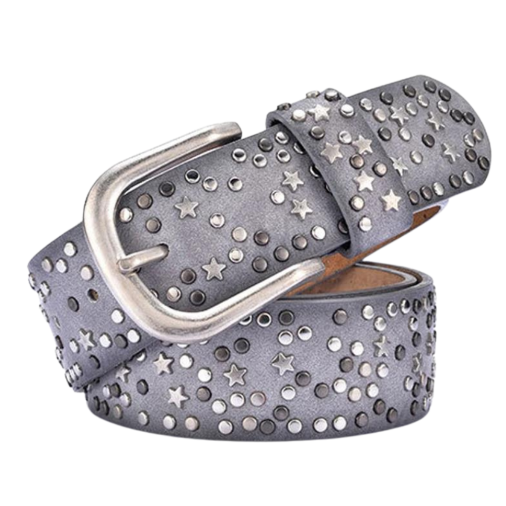 Ausgestattet mit einer klassischen Metallschnalle wird dieser Gürtel zum Statement-Piece, das jedes Outfit aufwertet. Das markante geometrische Nietenmuster, kombiniert mit strahlenden Sternen, macht ihn zur idealen Wahl für modebewusste Frauen, die ihren Look mit einem Hauch von Glanz und Charakter individualisieren möchten. Egal, ob bei einem entspannten Stadtbummel oder einem aufregenden Abend in der Stadt – dieser Gürtel bietet die perfekte Verbindung aus Stil und Funktionalität für jeden Anlass.