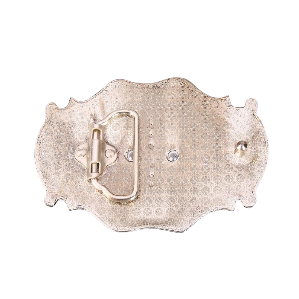 Das markante Longhorn-Motiv dieser Gürtelschnalle steht nicht nur als Symbol des amerikanischen Westens, sondern auch als zeitloses Emblem für Stärke, Wildheit und Ausdauer. Der dekorative silberne Hintergrund in Kombination mit den goldenen Akzenten schafft einen beeindruckenden Kontrast, der diese Schnalle zum zentralen Blickfang Ihrer Western-Bekleidung macht. Ob als Highlight zu einem klassischen Cowboy-Outfit oder als stilvolles Detail in Ihrem modernen Freizeitlook – diese Gürtelschnalle lässt Sie im authentischen Westernstil herausstechen.