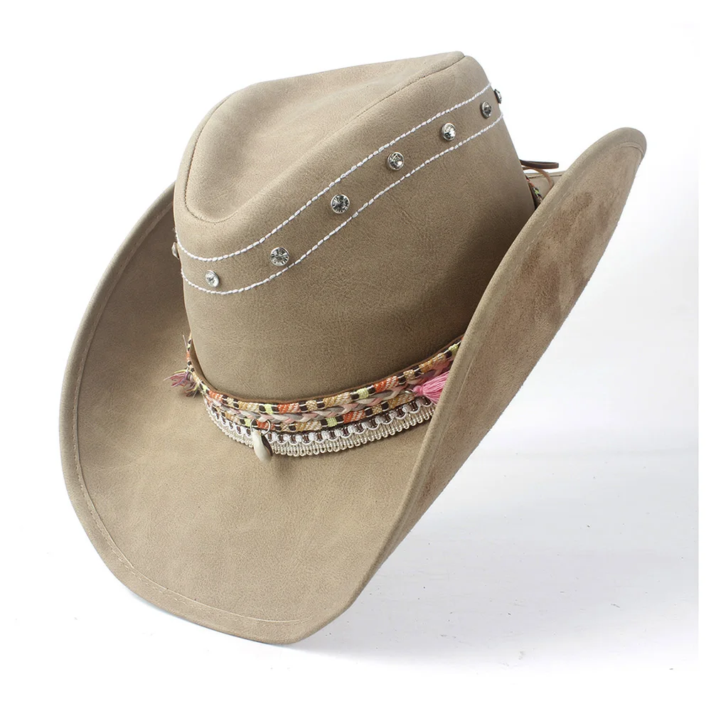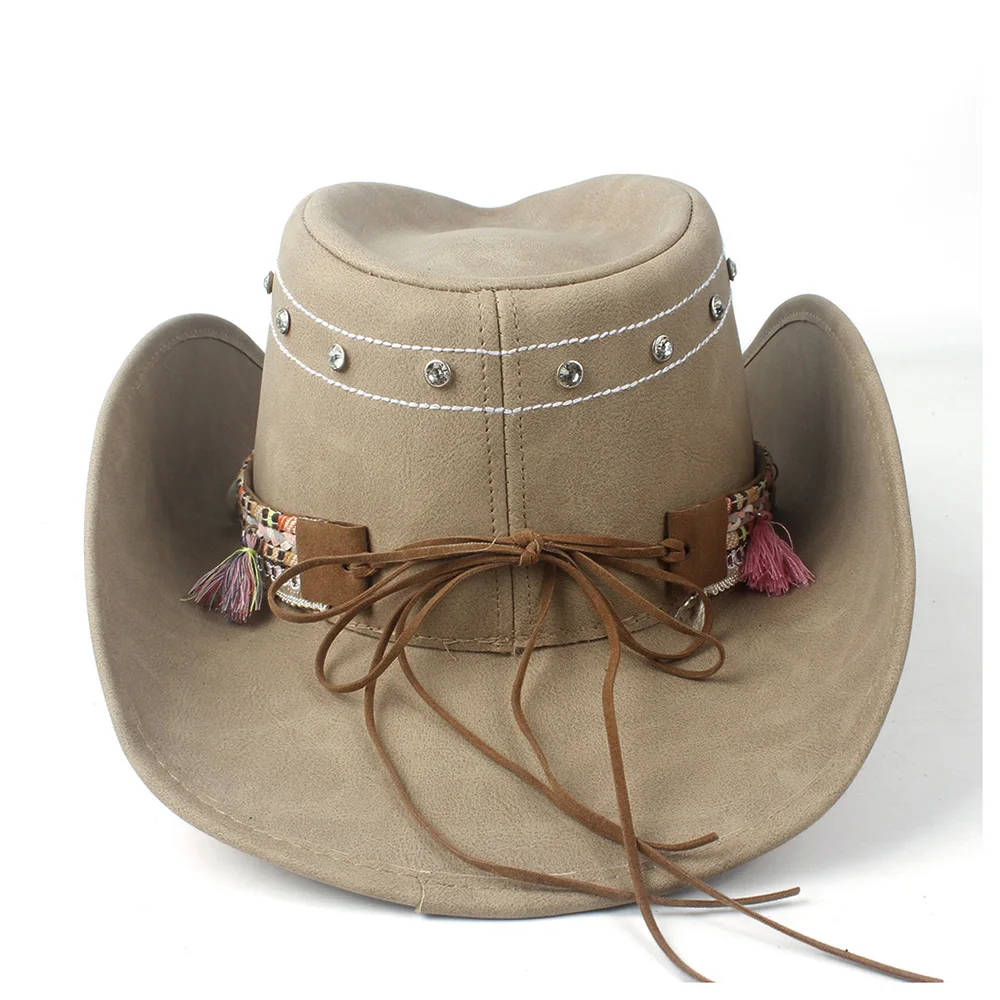 Eleganter Leder-Cowboyhut mit buntem Band – Stilvolles Western-Accessoire