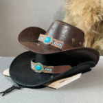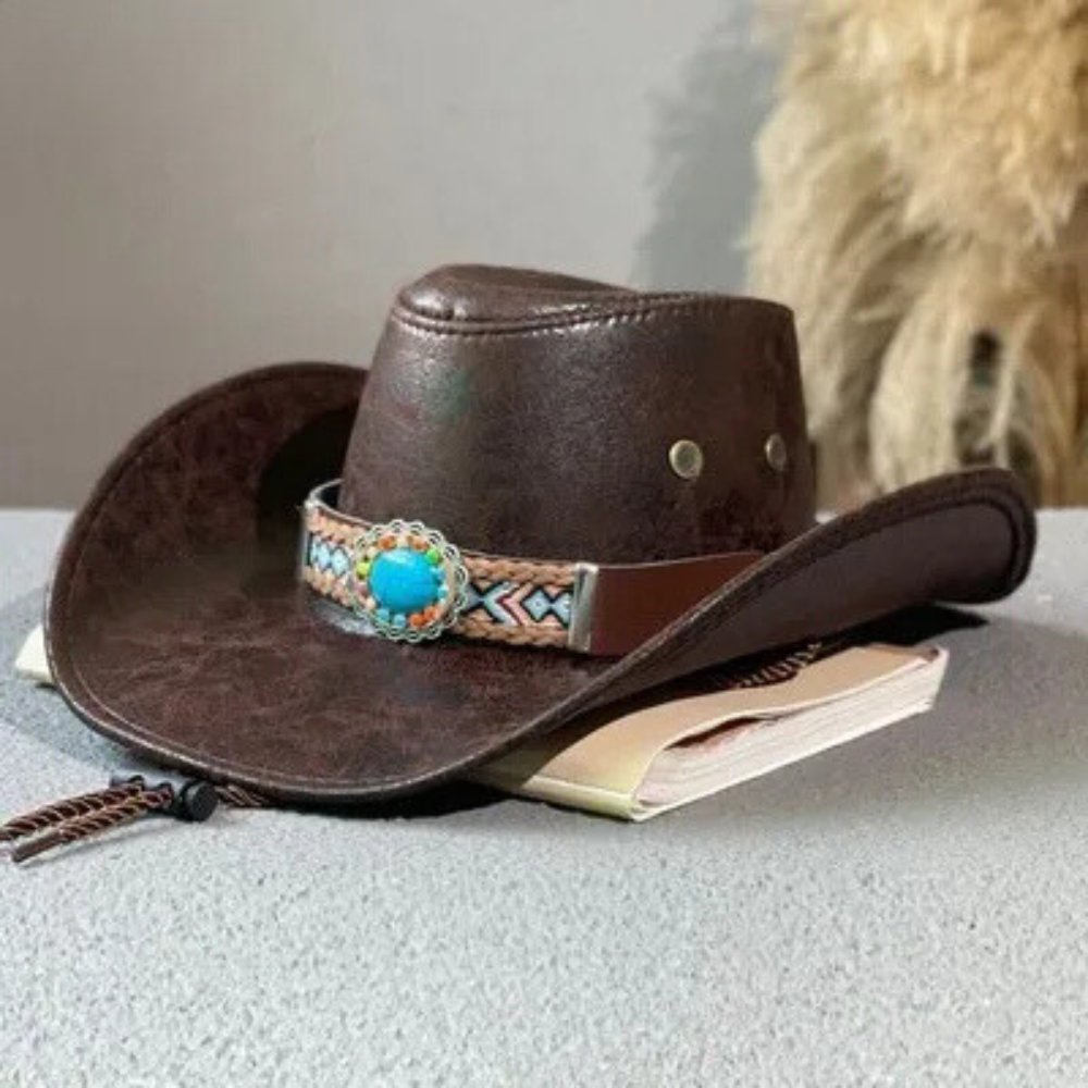 Modischer Ledercowboyhut mit türkisem Akzent für den perfekten Western-Look