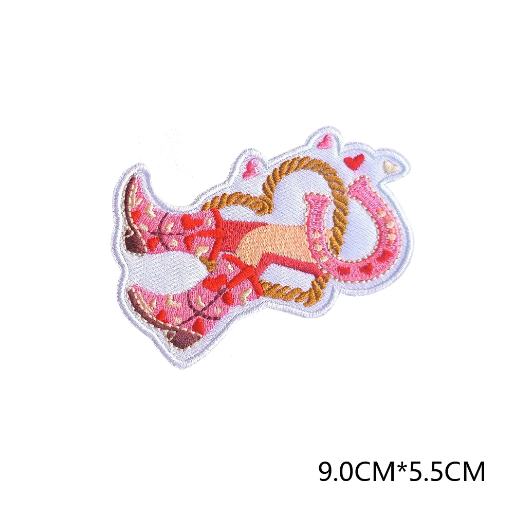 Verleihe deinem Look das gewisse Etwas mit dem rosa Cowboystiefel- und Hufeisen-Aufnäher