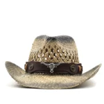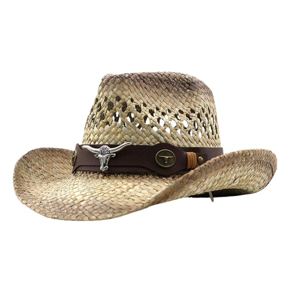 Stilvoller Strohhut im Cowboy-Design mit markanten Longhorn-Akzenten