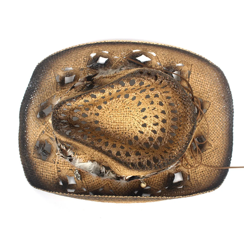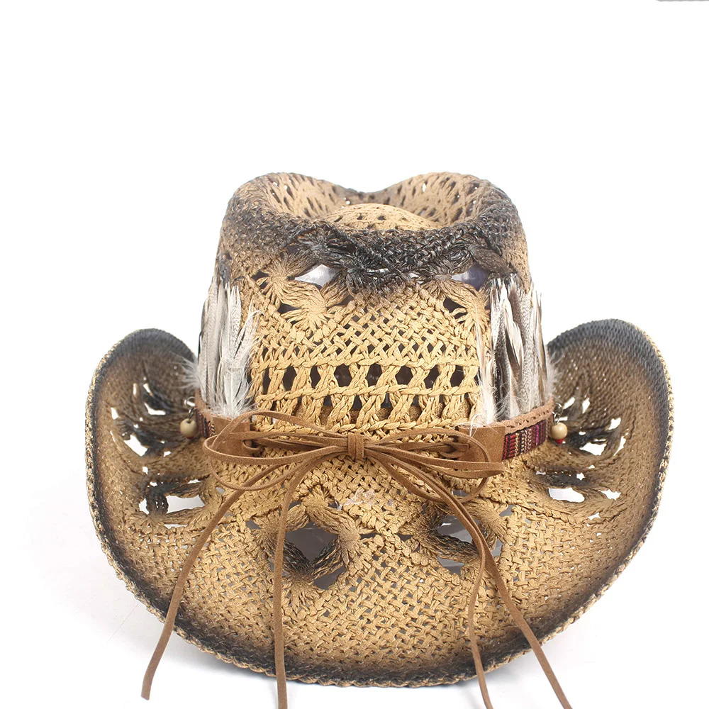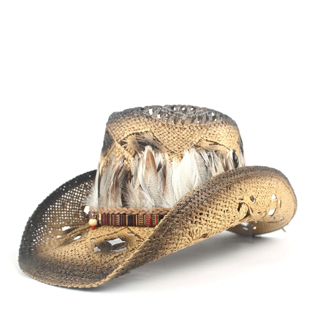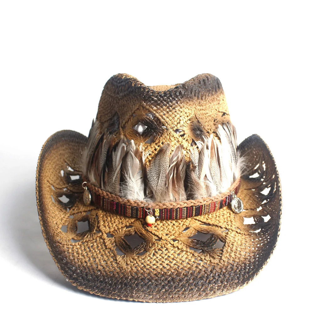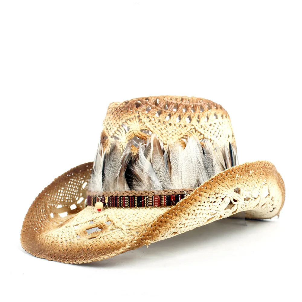 Bereichern Sie Ihre Garderobe mit diesem hochwertigen Strohcowboyhut, der den trendigen Boho-Look mit exklusiven Federdetails kombiniert. Sein leichtes, atmungsaktives Design macht ihn zum idealen Begleiter für jedes Outdoor-Abenteuer und verleiht Ihrem Stil eine perfekte Mischung aus Eleganz und Komfort.