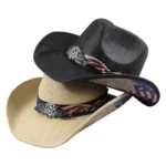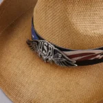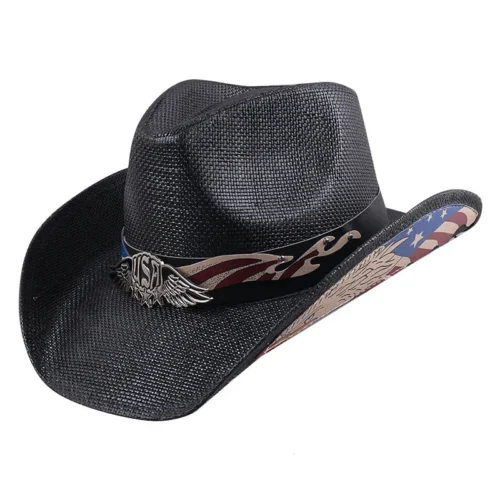 Eleganter Strohhut im Cowboy-Stil mit patriotischem geflügeltem USA-Emblem