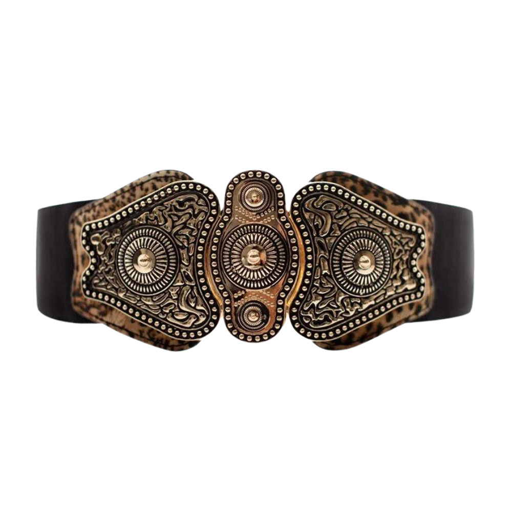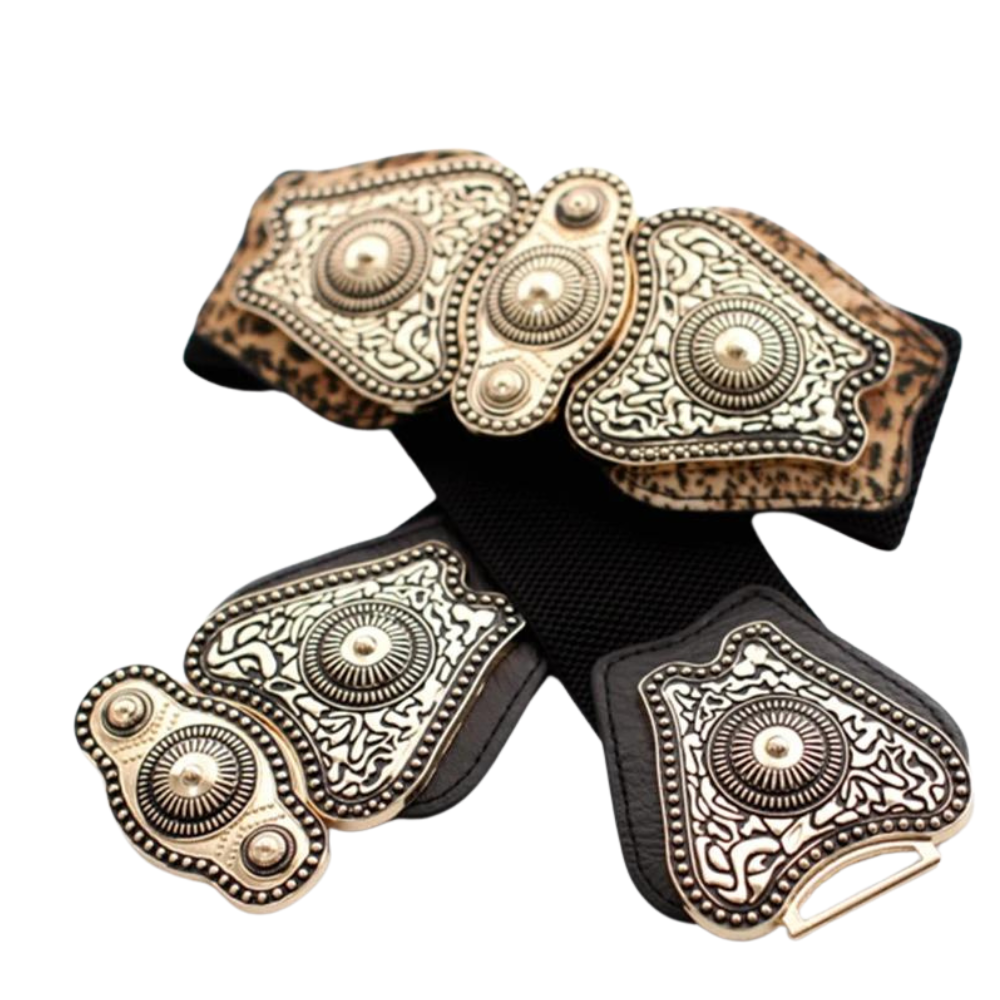 Verleihen Sie Ihrem Look mit unserem einzigartigen Vintage-Boho-Stretchgürtel eine besondere Note. Die edle, verzierte Metallschnalle verströmt nostalgischen Charme und setzt stilvolle Akzente. Egal, ob Sie sich für das klassische Schwarz oder das markante Leopardenmuster entscheiden – dieser Gürtel richtet sich an modebewusste Frauen, die ebenso Komfort wie Eleganz schätzen. Er verwandelt jedes Outfit, von leger bis elegant, in ein echtes Statement.