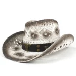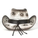 Das robuste Lederband mit western-inspirierten Details verleiht dem Outfit einen markanten, authentischen Akzent. Es harmoniert perfekt mit den natürlichen Farbtönen des Hutes und unterstreicht dessen rustikales Flair. Ob Sie sich für einen klassischen Cowboy-Look begeistern oder einen modernen Western-Stil bevorzugen – dieses Accessoire setzt immer ein stilvolles Statement.