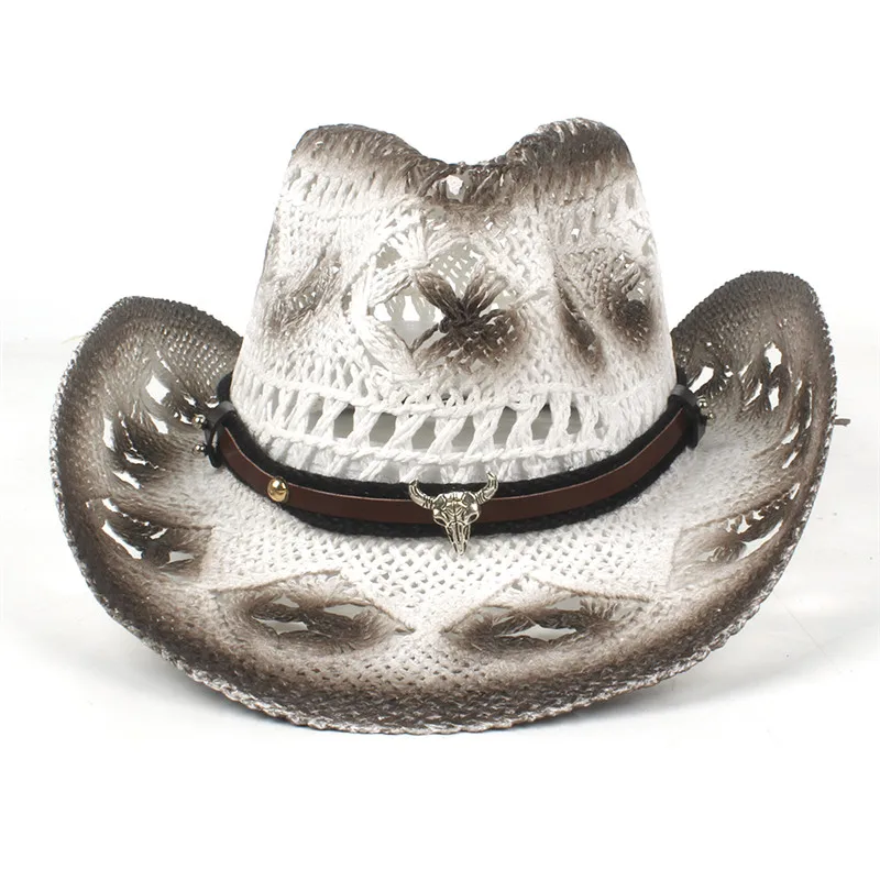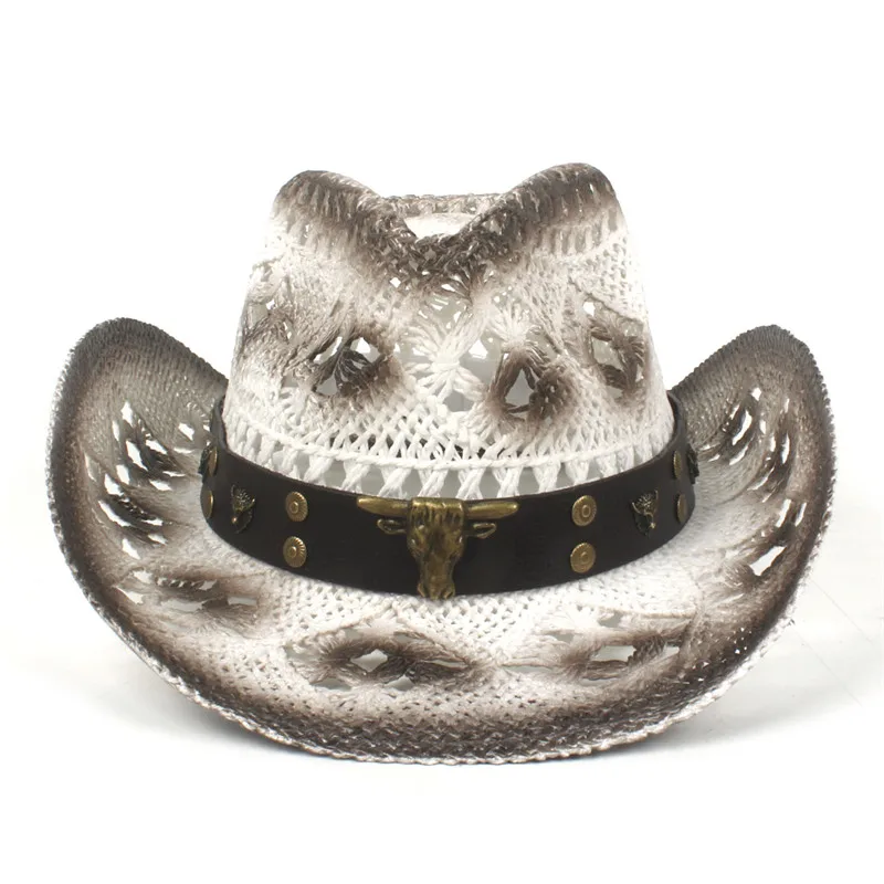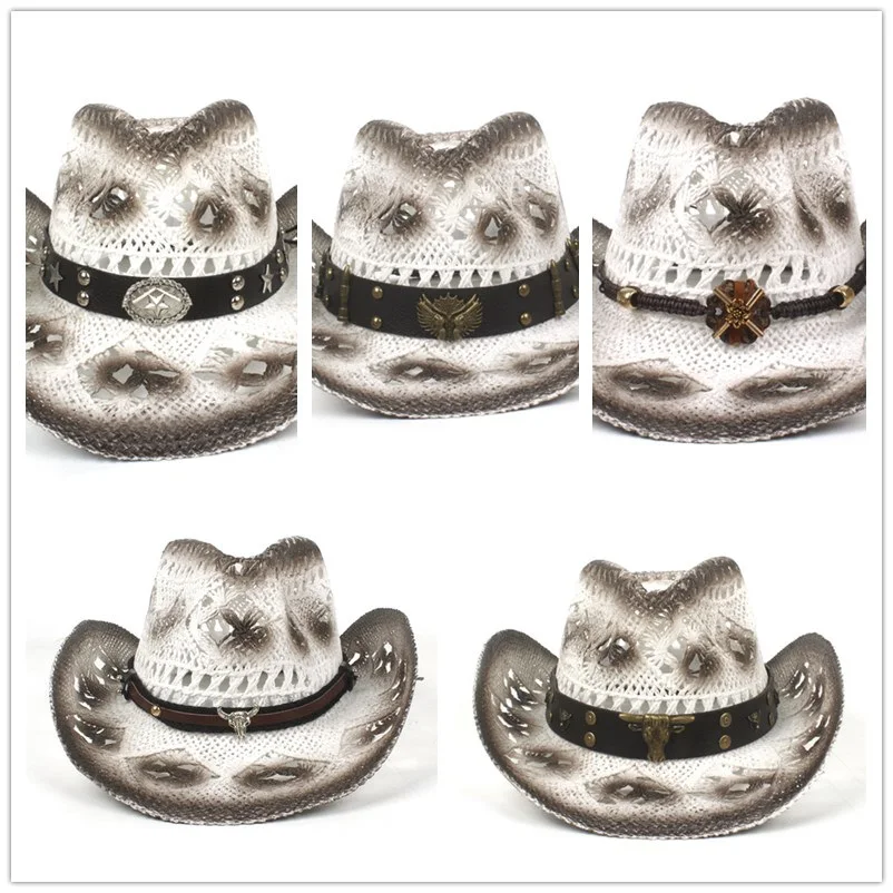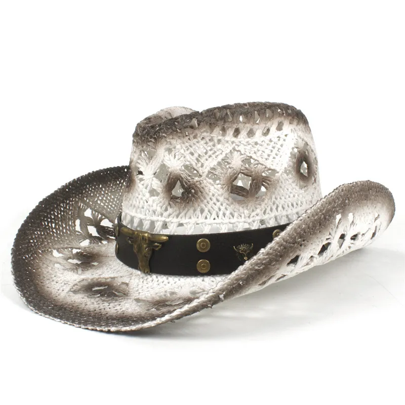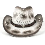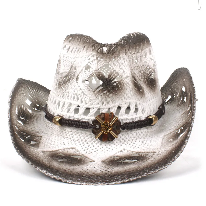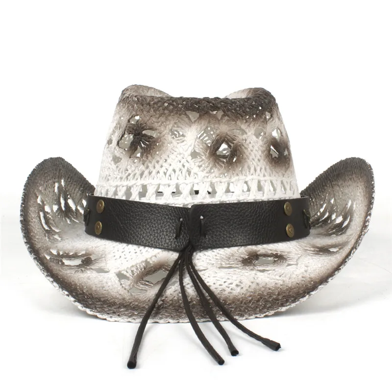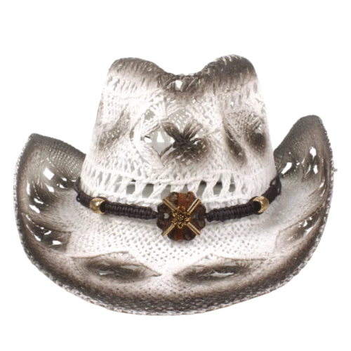 Trendiger Strohhut in Weiß und Braun mit Lederdetail – Der perfekte Westernlook für Cowgirls und Cowboys