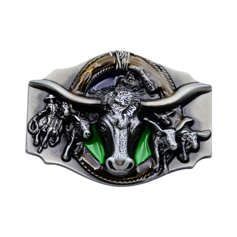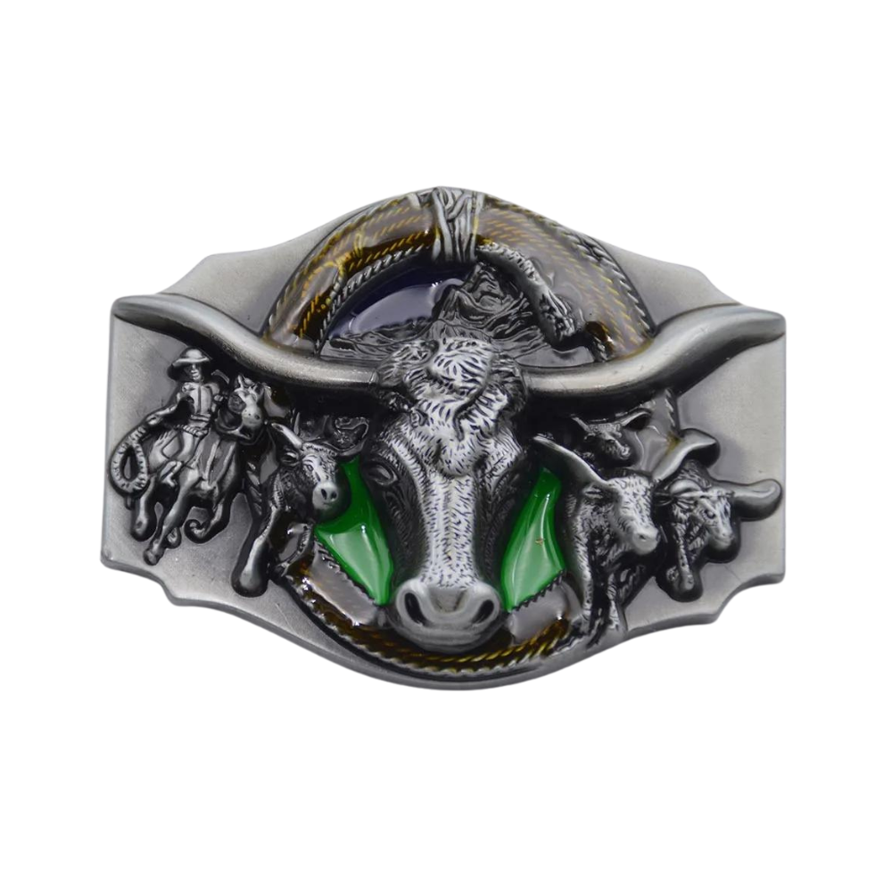 Western Longhorn Cowboy Gürtelschnalle – Authentischer Flair des Wilden Westens