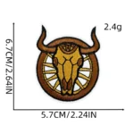 Verleihen Sie Ihrem Outfit einen Hauch authentischen Western-Charme mit unserem einzigartigen Western-Stier-Totenkopf-Rad gestickten Aufnäher. Das markante Design – ein Totenkopf, kunstvoll in ein Wagenrad integriert – setzt ein starkes Statement und ist die ideale Ergänzung für Cowboy-inspirierte Mode, Vintage-Looks und trendige Accessoires.