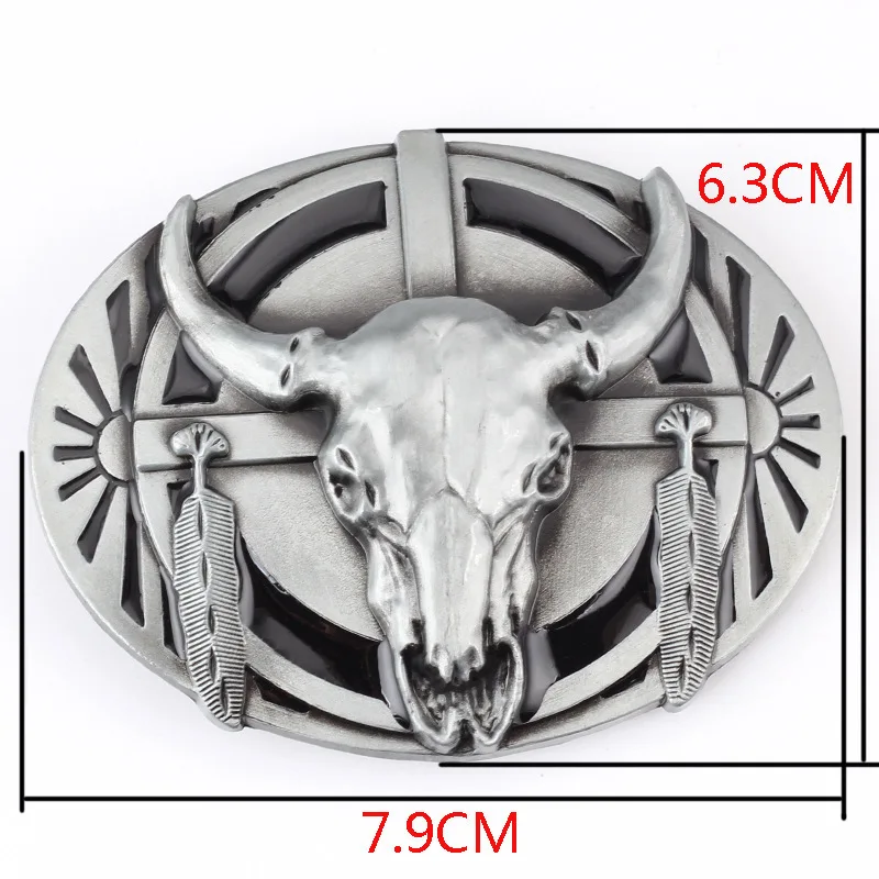Western-stierschädel-cowboygürtelschnalle mit federnakzenten