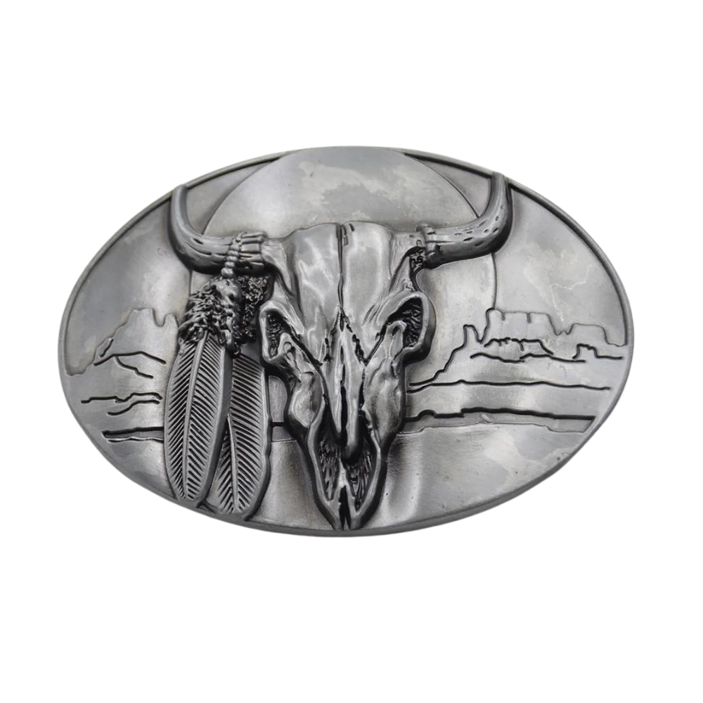 Erleben Sie den authentischen Western-Look mit unserer Western Stierschädel-Gürtelschnalle