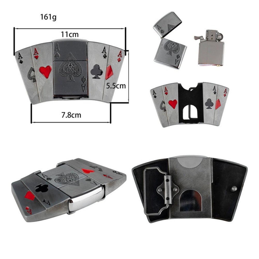 Gefertigt aus hochwertigem, strapazierfähigem PU-Kunstleder garantiert der Gürtel langanhaltenden Tragekomfort und Langlebigkeit. Die robuste Schnalle aus reiner Zinklegierungsmetall beeindruckt nicht nur optisch, sondern enthält zudem ein integriertes Feuerzeug – ein echter Hingucker und ein besonderes Accessoire für Liebhaber origineller Mode.